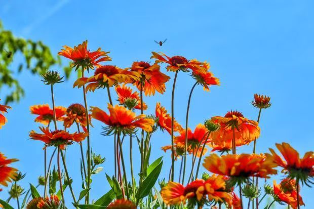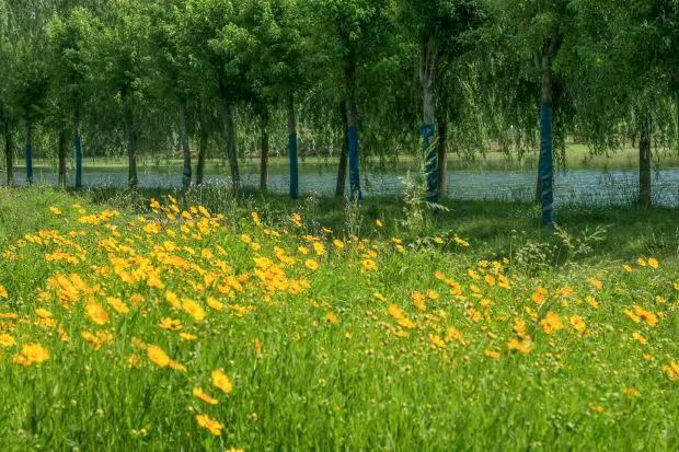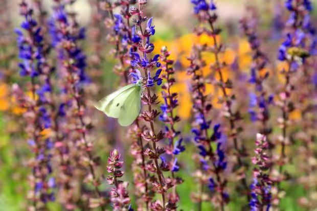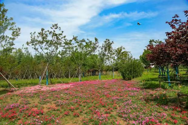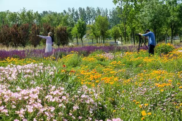 202557日,河南省周口市西華縣雙狼溝濱河公園的花競相綻放,引得蝴蝶振翅、蜜蜂穿梭。花叢間,彩翼紛飛與金色花海相映成趣,勾勒出靈動的生態花卷。圖為花香引蜂來。肖海清 攝